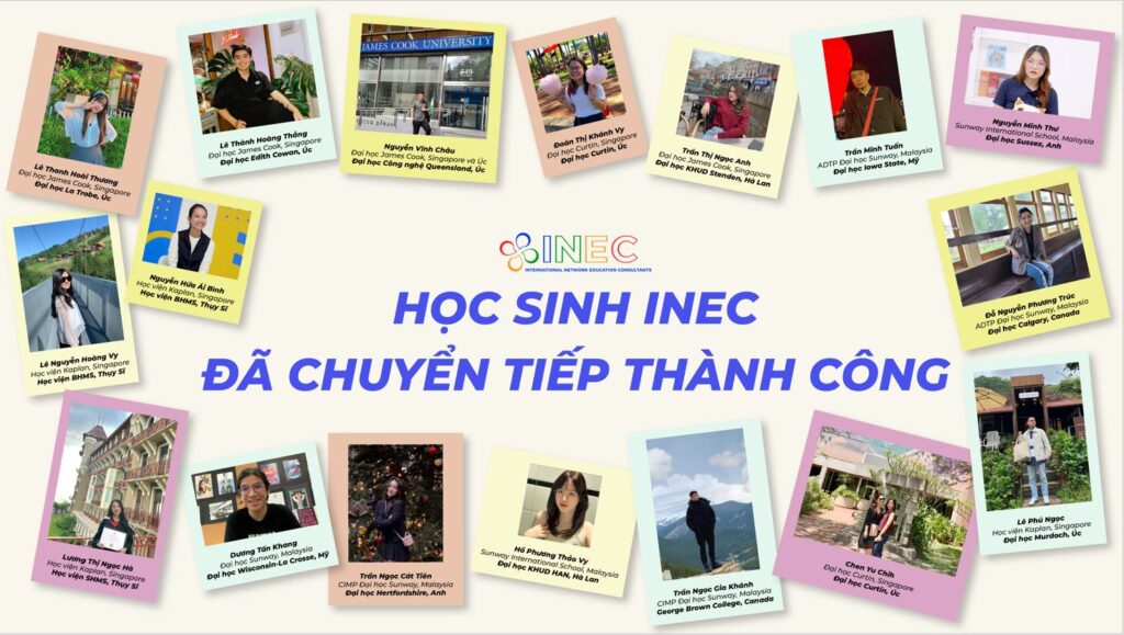 Với gần 20 năm hoạt động, INEC là đối tác tuyển sinh chính thức của nhiều trường Singapore có mạng lưới liên thông rộng khắp thế giới. INEC đồng hành cùng học sinh trong toàn bộ quá trình: từ định hướng ngành – trường dựa trên mục tiêu quốc gia cuối, xây dựng lộ trình từng bước rõ ràng, giảm thiểu rủi ro sai hướng, cho đến xử lý hồ sơ học thuật – visa bằng quy trình chuẩn và tiết kiệm thời gian.