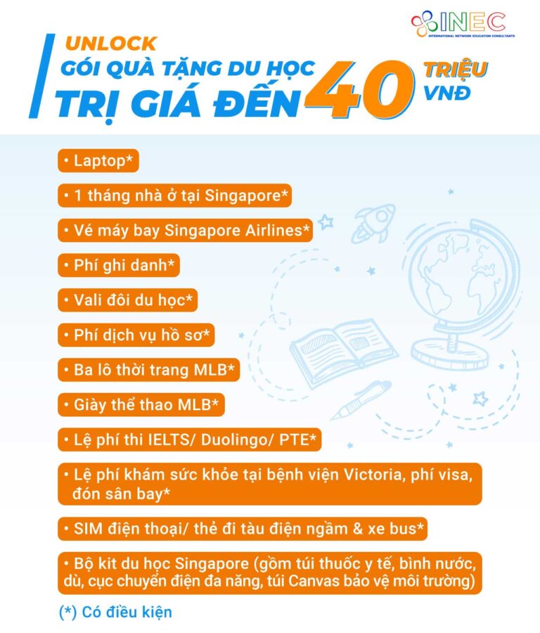 | Nhận quà tặng & ưu đãi hấp dẫn | Quà học tập, voucher dịch vụ du học và nhiều phần quà giá trị khác. |